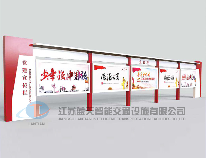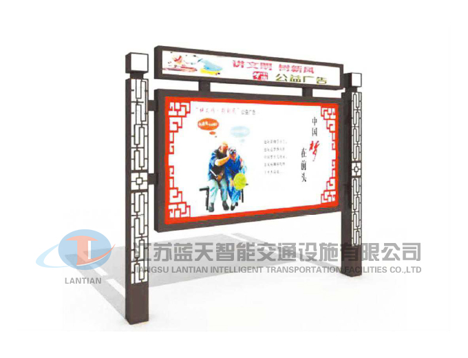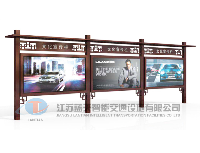 是一家生產(chǎn)宣傳欄,候車亭,公交站臺,閱報欄,指路牌,廣告垃圾箱,滾動換畫燈箱等系列產(chǎn)品廠家!產(chǎn)品多達(dá)上百種,亦可根據(jù)客戶的需求加工制作各種型號、規(guī)格的產(chǎn)品。目前已經(jīng)成功的向市場推出裝備有太陽能的各類產(chǎn)品,緊跟國家倡導(dǎo)“節(jié)能低碳”的環(huán)保政策。